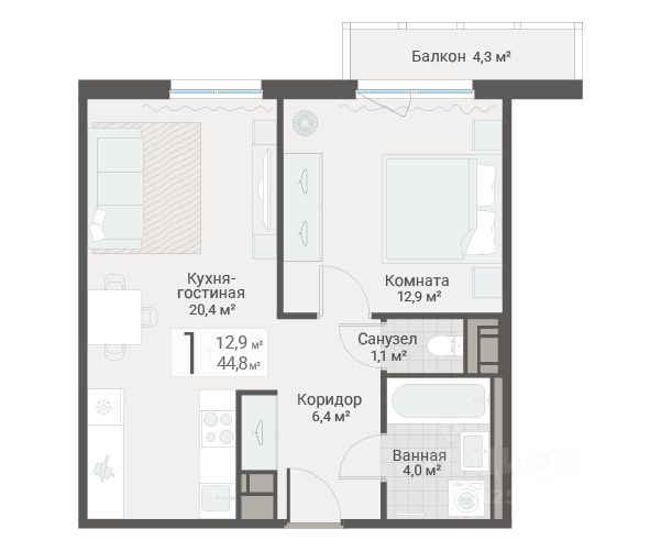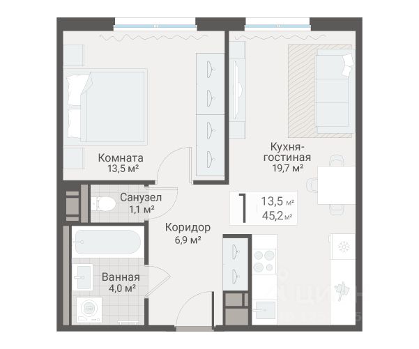 Продаётся 1-комнатная квартира в сданном доме (Корпус 2 ( Актёрский проезд, 2к1)), срок сдачи: IV-кв. 2024, общей площадью 44.9 кв.м., на 3 этаже. Жилой комплекс "Руднева 15" расположен в Выборгском районе Санкт-Петербурга, недалеко от трёх станций метро "Проспект Просвещения", "Озерки" и "Гражданский проспект". Дома расположены в благоустроенном микрорайоне с полностью сложившейся инфраструктурой. Здесь есть всё необходимое для комфортного проживания. Комплекс состоит из трёх 13-этажных зданий, выполненных в едином архитектурном стиле, а также многоуровневого паркинга. Кроме того, рядом расположен муниципальный детский сад, построенный компанией "Темп". Закрытые дворы, видеодомофоны, электронные ключи и современная система безопасности обеспечивают жителям спокойствие и комфорт. Безбарьерная среда и просторные холлы с оборудованием для маломобильных граждан делают жилой комплекс доступным для всех. В парадных установлены малошумные лифты марки OTIS. В комплексе представлены квартиры различных планировок: от студий площадью 30 м до трёхкомнатных квартир 100 м. Все квартиры отличаются продуманной планировкой, отвечающей требованиям современной семьи. В каждом варианте предусмотрены просторные кухни-гостиные площадью от 15 м до 31 м. Некоторые двухкомнатные квартиры оборудованы окнами в ванных комнатах, а в трёхкомнатных квартирах обязательно предусмотрены два санузла. Квартиры передаются покупателю с полной чистовой отделкой. Продажа осуществляется по договору купли-продажи, с возможностью заселения сразу после оплаты. Доступны различные формы оплаты: 100%, ипотека, рассрочка, различные субсидии и использование материнского капитала. "Руднева 15" - это комфортное и современное жильё, идеально подходящее для семейной жизни. Продается 1-комнатная квартира в новостройке на проезде Актерский в Санкт-Петербурге.