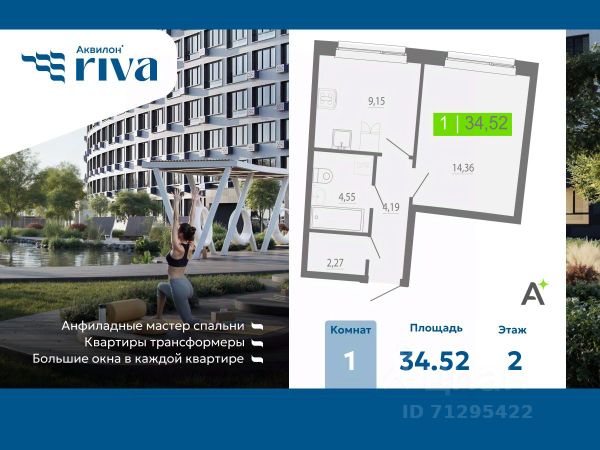Однокомнатная квартира в ЖК "Аквилон RIVA" на 2 этаже. Квартира без отделки, после выдачи ключей можно делать ремонт. Общая площадь: 36.34 кв.м., площадь просторной кухни-столовой: 12.84 кв.м. Высота потолков 2.73 м. Дом монолитный, трехподъездный, переменной этажности, от 16 до 20 этажей. Квартира находится в 1-й секции высотой 20 этажей в корпусе 1. На этаже 15 квартир. В подъезде 2 пассажирских и 1 грузовой лифт. Окончание строительства - 4 квартал 2027 года. Оформление сделки по договору долевого участия. В шаговой доступности от дома находится станция метро (расстояние по прямой) "Девяткино" (1.9 км). ЖК "Аквилон RIVA" - жилой комплекс комфорт класса у метро Девяткино от Группы Аквилон В самом сердце двора раскинулся собственный водоём — не просто украшение, а часть вашей повседневной жизни. Летом — это благоустроенная набережная для прогулок, отдыха в тени деревьев и тихих вечеров у воды. А зимой водоём превращается в залитый каток — место, где звучит смех, скользят коньки и рождаются семейные традиции. Здесь каждое время года раскрывает свой характер. Зона уединения: Места для занятия йогой и медитаций Мульти скворечники Качели с подсветкой для уютных бесед Высокие скамейки на набережной для отдыха и чтения на свежем воздухе Активная зона: Развивающие детские площадки для разных возрастов Спортивные площадки с зоной Ворк-аут, Столы для настольного тенниса Площадка для пляжного волейбола Преимущества Увеличенные окна с заполнением аргоном Корзины под кондиционеры Сити-боксы вместо балконов Безбарьерная среда Бесшумные скоростные лифты Контроль доступа на территорию и видеонаблюдение Отделка квартир Чистовая отделка в трех цветовых решениях: Sand, Terra и Graphite Дозаказ для любой квартиры Стандарты Группы Аквилон для вашей комфортной жизни Thermo-S экономия на коммунальных платежах за счет дополнительно утепленных стен, кровли и цоколя. Энергоэффективные окна с селективным покрытием и аргоновым заполнением Soundstop - дополнительная шумоизоляция внутренних перегородок и межэтажных перекрытий, шумозащитные окна, малошумные лифты Light-in - в квартирах устанавливаются широкоформатные окна, увеличены на 30%. Высота подоконников на уровне 60 см от пола. Vent-in - в каждой комнате есть клапаны индивидуальной вентиляции, которые обеспечивают приток свежего воздуха с улицы. inHOME умный дом в каждой квартире Интеллектуальная цифровая система, которая позволит дистанционно решать бытовые вопросы, управлять квартирой и экономить на оплате коммунальных услуг. В состав inHOME входят: IP-домофон, Face key, "умные" счетчики, датчики протечки, дистанционное отключение розеток, и т.д. Паркинг Отдельно стоящий 3-х уровневый паркинг Электрозарядки на территории ЖК Локация м. Девяткино 5 минут Центр города - 20 минут КАД 5 минут. #zMuM17 Купить 1-комнатную квартиру в новостройке рядом с метро Академическая.