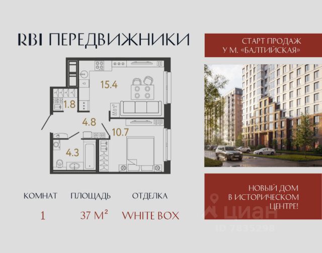 "Передвижники" — новый дом от RBI в Адмиралтейском районе Петербурга, в 5 минутах пешком от метро "Балтийская" на набережной Обводного канала, 118. Здесь, на территории бывшего Варшавского вокзала, где в XIX веке начинался железнодорожный маршрут из России в Европу, сегодня вновь ощущается энергия пути — дух движения, свободы и вдохновения. В шаге от дома — самый большой в Европе фудмолл Vokzal 1853, вдохнувший новую жизнь в здание исторического вокзала. Рядом с ним — Воскресенская церковь, а напротив, в перспективе Измайловского проспекта сияет небесный купол Троице-Измайловского собора — шедевра зодчества архитектора Василия Стасова в духе русского ампира. Из окон вашей квартиры исторический центр как на ладони! А до Московского проспекта и метро "Фрунзенская" — 10 минут пешком. В архитектуре дома философия движения воплотилась в характерной для проектов бюро "А.Лен" кирпичной 3D-кладке и акцентных входных порталах, которые визуально перекликаются с пакгаузом товарной станции Варшавского вокзала. В едином П-образном корпусе — 5 секций на 355 квартир высокого класса от студий 25 м² до еврочетырёхомнатных 88 м². В первой секции — три квартиры с видовыми террасами. Потолки на типовых этажах — 2,72 м, на 10 — 12 этажах их высота достигает 3 м. Все квартиры продаются с отделкой White Box. Динамику приватного двора без машин задаёт не только ландшафтное озеленение, но и диагональная кладка наземного покрытия. Встроенные в мощение светильники, словно огни перрона, освещают ваш путь домой. Даже детские площадки в "Передвижниках" отражают исторический бэкграунд: арочные домики напоминают о вокзальной архитектуре и приглашают в увлекательное путешествие! Качели, горка, песочница и холм-лазалка — здесь ваши дети познают мир через движение, смех и смелость. На площадке для малышей появятся домик и игровая доска от Richter RUS. Подростки смогут заниматься воркаутом на многофункциональной раме от FOREMAN. Входная группа дома — архитектурный портал между шумным городом и приватным пространством. Здесь в помещении 135 м² появятся стойка ресепшн с витражной изгородью, лаунжи для встреч, коворкинг с кофепоинтом и свободным Wi-Fi для работы и творчества. В доме оборудуют подземный паркинг на 213 м/м, 10 из которых — с зарядкой для электромобилей. Купить машиноместо здесь могут только жители. Для вашего удобства на лифте из паркинга вы можете сразу подняться на свой жилой этаж. Для гостей у дома оборудуют парковку на 48 автомобилей. В отдельно стоящем здании, примыкающем к дому, RBI построит муниципальный детский сад на 105 малышей. "Передвижники". Дом для тех, кто не стоит на месте! Продам 1-комнатную квартиру в новостройке рядом с метро Балтийская.