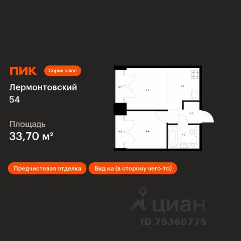Продаётся 1-комн. квартира площадью 33,7 кв.м на 9 этаже 9 этажного дома (Корпус 1, Секция 2) проекта ПИК Лермонтовский 54. Светлый просторный подъезд на уровне земли, функциональная планировка, большие окна, предчистовая отделка. "Лермонтовский 54" находится в центре Санкт-Петербурга на набережной Обводного канала, в 5 минутах пешком от метро "Балтийская". Здесь будут квартиры с окнами в пол, высокими потолками и террасами. Жилой квартал находится в центре Санкт-Петербурга, в Адмиралтейском районе, на набережной Обводного канала. В 5 минутах пешком - станция метро "Балтийская". До Невского проспекта на автомобиле ехать 8 минут, до Московского проспекта - всего 2 минуты. Необычные фасады "Лермонтовского 54" напоминают о промышленной архитектуре, которая была популярна в Санкт-Петербурге в конце XIX и начале XX века. Материал отделки - прочный кирпич, который прослужит до 100 лет. А благодаря системе чиллер-фанкойл на фасадах не будет блоков кондиционеров - всё охлаждение происходит внутри здания. В "Лермонтовском" возводятся дома высотой от 7 до 9 этажей с небольшим количеством квартир: на этаже может быть всего две квартиры. Во дворах будут закрытые парки с детскими площадками и местами для отдыха, а на подземном этаже - паркинг с удобной навигацией. Между домами протянется пешеходный бульвар для прогулок и отдыха, для велосипедистов предусмотрены специальные дорожки и парковки. В 2024 году в "Лермонтовском 54" открылся лицей на 1000 мест. Он разместился в здании 1824 года - раньше здесь было Николаевское кавалерийское училище. Во всех квартирах будут трёхметровые потолки и окна в пол. На первых этажах откроются магазины, кафе и другие сервисы. Со стороны набережной в домах, которые признаны объектами культурного наследия, мы разместим общественные пространства. Недалеко от "Лермонтовского 54" находится Юсуповский дворец, парк Екатерингоф, на машине можно доехать до острова Новая Голландия и Мариинского театра. Рядом работают школы, детские сады, торговые центры и гипермаркеты. Артикул 786291 (Застройщик ООО "СПЕЦИАЛИЗИРОВАННЫЙ ЗАСТРОЙЩИК "АЛЬМАНДИН") [cn_sbp_1500621]