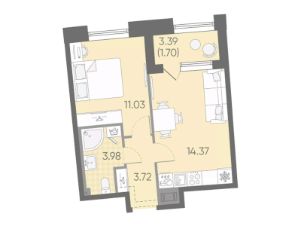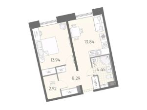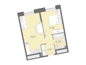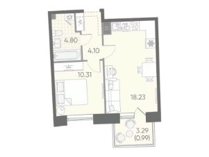 Продается 1-комн. квартира с предчистовой отделкой в ЖК "LEGENDA Васильевского" на 8 этаже. Общая площадь: 38.56 кв.м., жилая: 12.16 кв.м., площадь просторной кухни-столовой: 17.8 кв.м. Все окна выходят на одну сторону. В квартире один балкон, один совмещенный санузел. Высота потолков 2.72 м.