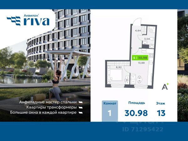 ЖК "Аквилон RIVA" - жилой комплекс комфорт класса у метро Девяткино от Группы Аквилон В самом сердце двора раскинулся собственный водоём — не просто украшение, а часть вашей повседневной жизни. Летом — это благоустроенная набережная для прогулок, отдыха в тени деревьев и тихих вечеров у воды. А зимой водоём превращается в залитый каток — место, где звучит смех, скользят коньки и рождаются семейные традиции. Здесь каждое время года раскрывает свой характер. Зона уединения: Места для занятия йогой и медитаций Мульти скворечники Качели с подсветкой для уютных бесед Высокие скамейки на набережной для отдыха и чтения на свежем воздухе Активная зона: Развивающие детские площадки для разных возрастов Спортивные площадки с зоной Ворк-аут, Столы для настольного тенниса Площадка для пляжного волейбола Преимущества Увеличенные окна с заполнением аргоном Корзины под кондиционеры Сити-боксы вместо балконов Безбарьерная среда Бесшумные скоростные лифты Контроль доступа на территорию и видеонаблюдение Отделка квартир Чистовая отделка в трех цветовых решениях: Sand, Terra и Graphite Дозаказ для любой квартиры Стандарты Группы Аквилон для вашей комфортной жизни Thermo-S экономия на коммунальных платежах за счет дополнительно утепленных стен, кровли и цоколя. Энергоэффективные окна с селективным покрытием и аргоновым заполнением Soundstop - дополнительная шумоизоляция внутренних перегородок и межэтажных перекрытий, шумозащитные окна, малошумные лифты Light-in - в квартирах устанавливаются широкоформатные окна, увеличены на 30%. Высота подоконников на уровне 60 см от пола. Vent-in - в каждой комнате есть клапаны индивидуальной вентиляции, которые обеспечивают приток свежего воздуха с улицы. inHOME умный дом в каждой квартире Интеллектуальная цифровая система, которая позволит дистанционно решать бытовые вопросы, управлять квартирой и экономить на оплате коммунальных услуг. В состав inHOME входят: IP-домофон, Face key, "умные" счетчики, датчики протечки, дистанционное отключение розеток, и т.д. Паркинг Отдельно стоящий 3-х уровневый паркинг Электрозарядки на территории ЖК Локация м. Девяткино 5 минут Центр города - 20 минут КАД 5 минут #Zm35BA Купить 1-комнатную квартиру в новостройке рядом с метро Гражданский проспект.