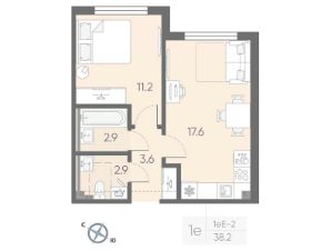 Продается квартира 33, по адресу г. Санкт-Петербург, поселок Шушары, Школьная улица, стр.1, корпус ЖК Монография в Монография на 8 этаже, с площадью 34.4 м2.