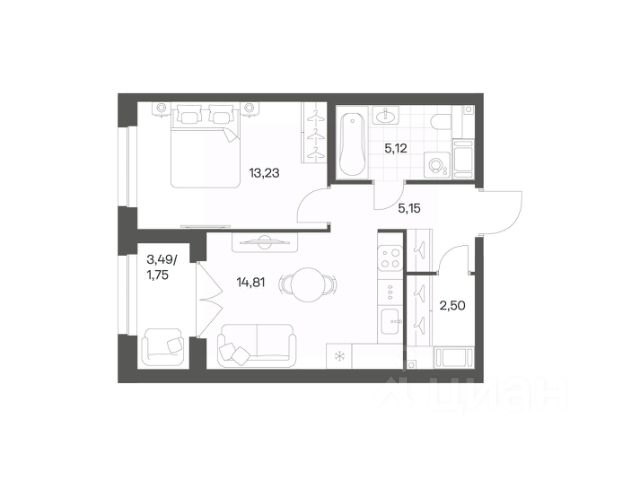 В продаже 1-комнатная квартира в корпусе 39 ЖК 'Живи! В Рыбацком'. Квартира располагается на 9 этаже, общая площадь 37.13 м2.