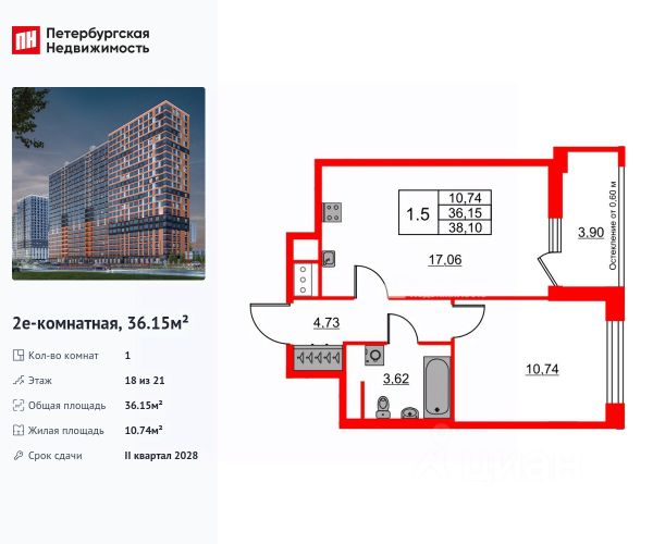 Продается квартира площадью 42.56 м² на 7 этаже 1 секции в Речной квартал от компании ГК "ТРЕСТ". Площадь кухни 14.81 м². Семейный жилой комплекс комфорт-класса "Речной квартал" от Группы компаний "ТРЕСТ" расположен в Невском районе Петербурга на пересечении Октябрьской набережной и Русановской улицы. Первая очередь квартала состоит из трёх корпусов, расположенных лучеобразно, чтобы максимально использовать естественное освещение и обеспечить видовые точки на локацию. Проект выделяется современными архитектурными решениями и дизайном. Концепция развития и благоустройства придомовой территории разделена на зоны отдыха, досуга и игровые площадки с учетом возраста и потребностей детей и взрослых. Квартал рассчитан на семейных покупателей, поэтому здесь нет студий: только одно-, двух- и трёхкомнатные квартиры. В проекте представлены квартиры с кухнями-гостиными, мастер-спальнями, гардеробными и кладовыми. "Речной квартал" - современный жилой комплекс с разнообразным благоустройством придомовой территории, просторными европланировками, закрытой охраняемой территорией и подземными паркингами. На территории комплекса уже функционирует детский сад на 110 мест. Также в квартале будет построена общеобразовательная школа на 475 мест с бассейном и стадионом. Открытие школы запланировано на 2029 год. Квартиры в ЖК "Речной квартал" можно приобрести с готовой отделкой от застройщика. Для покупателей квартир предусмотрено два варианта чистовой отделки "Ваниль" и "Шоколад". Чистовая отделка в квартирах ЖК "Речной квартал" предполагает монтаж натяжных потолков, укладку ламината, оклейку стен обоями под покраску, установку светильников и межкомнатных дверей. При отделке новой квартиры применяются качественные, натуральные и экологичные материалы, монтируется стильная импортная сантехника европейских брендов. В объявлении указана стоимость квартиры при 100% оплате. При других формах оплаты - базовую стоимость квартиры уточняейте на официальном сайте компании или у менеджера отдела продаж. Застройщик АО "Специализированный застройщик "Строительный трест". Купить 1-комнатную квартиру в новостройке рядом с метро Обухово.