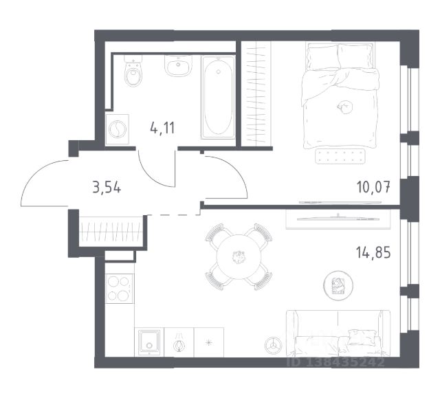 В продаже 1-комнатная квартира в корпусе 6-7 ЖК 'Живи! В Рыбацком'. Квартира располагается на 8 этаже, общая площадь 33.5 м2.