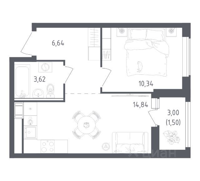 В продаже 1-комнатная квартира в корпусе 6-7 ЖК 'Живи! В Рыбацком'. Квартира располагается на 15 этаже, общая площадь 31.17 м2.