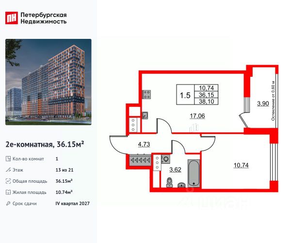 Продается квартира площадью 35.47 м² на 3 этаже 1 секции в Речной квартал от компании ГК "ТРЕСТ". Площадь кухни 13.87 м². Семейный жилой комплекс комфорт-класса "Речной квартал" от Группы компаний "ТРЕСТ" расположен в Невском районе Петербурга на пересечении Октябрьской набережной и Русановской улицы. Первая очередь квартала состоит из трёх корпусов, расположенных лучеобразно, чтобы максимально использовать естественное освещение и обеспечить видовые точки на локацию. Проект выделяется современными архитектурными решениями и дизайном. Концепция развития и благоустройства придомовой территории разделена на зоны отдыха, досуга и игровые площадки с учетом возраста и потребностей детей и взрослых. Квартал рассчитан на семейных покупателей, поэтому здесь нет студий: только одно-, двух- и трёхкомнатные квартиры. В проекте представлены квартиры с кухнями-гостиными, мастер-спальнями, гардеробными и кладовыми. "Речной квартал" - современный жилой комплекс с разнообразным благоустройством придомовой территории, просторными европланировками, закрытой охраняемой территорией и подземными паркингами. На территории комплекса уже функционирует детский сад на 110 мест. Также в квартале будет построена общеобразовательная школа на 475 мест с бассейном и стадионом. Открытие школы запланировано на 2029 год. Квартиры в ЖК "Речной квартал" можно приобрести с готовой отделкой от застройщика. Для покупателей квартир предусмотрено два варианта чистовой отделки "Ваниль" и "Шоколад". Чистовая отделка в квартирах ЖК "Речной квартал" предполагает монтаж натяжных потолков, укладку ламината, оклейку стен обоями под покраску, установку светильников и межкомнатных дверей. При отделке новой квартиры применяются качественные, натуральные и экологичные материалы, монтируется стильная импортная сантехника европейских брендов. В объявлении указана стоимость квартиры при 100% оплате. При других формах оплаты - базовую стоимость квартиры уточняейте на официальном сайте компании или у менеджера отдела продаж. Застройщик АО "Специализированный застройщик "Строительный трест". Купить 1-комнатную квартиру в новостройке рядом с метро Обухово.