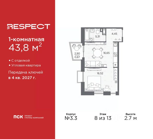 Однокомнатная квартира с предчистовой отделкой в ЖК "RESPECT" на 3 этаже. Общая площадь: 36.39 кв.м., жилая: 13.38 кв.м., площадь просторной кухни-столовой: 11.8 кв.м. Все окна выходят на одну сторону. В квартире один балкон и одна лоджия, один совмещенный санузел. Высота потолков 2.7 м. Квартира находится в корпусе 6. Дом монолитный, одноподъездный, высотой 13 этажей. На этаже 8 квартир. В подъезде 1 пассажирский и 1 грузовой лифт. Окончание строительства - 4 квартал 2026 года. Оформление сделки по договору долевого участия. В шаговой доступности от жилого комплекса имеются станции метро (расстояние по прямой): "Лесная" (800 м), "Площадь Мужества" (1.4 км), "Выборгская" (1.9 км), также недалеко от этого корпуса находятся станции метро: "Академическая", "Политехническая". Жилой квартал "RESPECT" строится на Полюстровском пр, 87, в одной из самых востребованных локаций Петербурга. В 10 минутах пешком - метро "Лесная" и в 10 минутах на транспорте - Петроградская сторона. Высота домов от 7 до 13 этажей. Квартиры сдаются с отделкой white box и с чистовой отделкой. На территории Respect строится школа на 1125 учащихся и детский сад на 240 мест. Запроектированы собственная газовая котельная, закрытая территория, дворы без машин и подземные паркинги с лифтами. В проекте предусмотрены трапециевидные балконы или остекленные лоджии, которые, с одной стороны, исключают монотонность фасада, являясь декоративными элементами, с другой дополнительным функциональным пространством в квартирах. Цветовая гармония фасадов каждого дома раскрывает характер квартала. Коричневый цвет клинкерного кирпича со структурой водяных штрихов — цвет уюта и безопасности, сдержанности и надёжности. Вентилируемые фасады облицованы клинкерным кирпичом. Его высокая прочность позволяет давать 100 лет гарантии на этот материал. Водопоглощение клинкерного кирпича составляет менее 5%, за счет чего у него высокая теплопроводность и прочность. В квартале запроектированы внутренние закрытые территории дворов домов без доступа автомобилей и безбарьерная среда для велосипедистов и колясок. Предусмотрены IP-домофония с функцией дистанционного открывания калиток и парадных, а также дистанционный сбор показаний счетчиков и мобильное приложение для жителей. Для безопасности жителей квартала - круглосуточное видеонаблюдение и служба охраны. В каждой квартире предусмотрены внешние корзины для кондиционеров. Вся территория квартала будет связана единой концепцией благоустройства, разработанной ландшафтным бюро L.BURO. На эксплуатируемой кровле на уровне первого этажа в домах 1 и 4 будут обустроены общественные видовые террасы. Это станет не только привлекательным местом с красивым видом, но и удобным, многофункциональным пространством. Дизайн парадных зон и входных групп - сочетание лаконичности отделки и декоративных элементов с текстурами из натурального камня и дерева с приглушенной подсветкой теплым светом. Во входных группах расположены гостевые зоны с мягкой мебелью. Отд Продам 1-комнатную квартиру в новостройке рядом с метро Площадь Мужества.