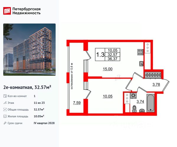 Цена действует при 100% оплате и на определенные ипотечные программы. Подробности — в отделе продаж по телефону. Продается 1-комнатная квартира в ЖК "Октябрьская набережная" на 13 этаже. Общая площадь составляет 37.80 кв. м. Квартира с чистовой отделкой . Жилой комплекс "Октябрьская набережная" располагается по адресу Санкт-Петербург, Невский. Октябрьская набережная - жилой комплекс на берегу Невы, который отличается живописными видами и удобным местоположением: в окрестностях ЖК есть всё необходимое для комфортной жизни. Расположение: • 2 минуты пешком до набережной Невы; • 7 минут до станции метро "Улица Дыбенко" на автомобиле; • 8 минут до Большого Обуховского моста на автомобиле; • 15 минут до ТРК "Лондон Молл" на автомобиле. Будущие жильцы могут обустроить квартиру по своему вкусу: предлагается 2 вида отделки - уютный темный "Comfort Wood" и легкий светлый "Comfort Stone". Отделка выполняется из качественных материалов: прочный ламинат с фактурой светлого дерева или белого камня, светлые обои под покраску, лаконичные межкомнатные двери. Вход в парадные расположен на уровне земли и создает доступную среду для пожилых людей, людей с ограниченными возможностями и мам с колясками. На цокольном этаже находятся кладовые, которые позволят освободить пространство квартиры от лишних вещей. Во всех парадных расположены колясочные, рядом с ними - велопарковки. На территории комплекса есть всё для любителей активного отдыха: спортивные площадки, уличные тренажеры, велодорожки, места для игры в баскетбол и волейбол. Спортсмены могут насладиться живописными видами во время пробежки вдоль набережной. В зелёных и облагороженных дворах есть всё и для семей с детьми: тематические площадки, детский сад и даже школа. Комфортная среда для питомцев - еще одно преимущество "Октябрьской набережной": рядом с домами находится площадка для выгула собак. Для удобства автомобилистов на территории комплекса устроены крытые паркинги с безопасными охраняемыми выездами и большим количеством машино-мест. В пешей доступности расположены супермаркеты, кафе, парикмахерские, отделения банков. Преимущества: • Первая береговая линия • Двор без машин • Доступная среда • Развитая инфраструктура • Школа и детский сад во дворе • Близость к метро Успейте приобрести квартиру на выгодных условиях! Чтобы узнать подробности, обращайтесь за консультацией по телефону. 1-комнатная квартира в новостройке рядом с метро Пролетарская.