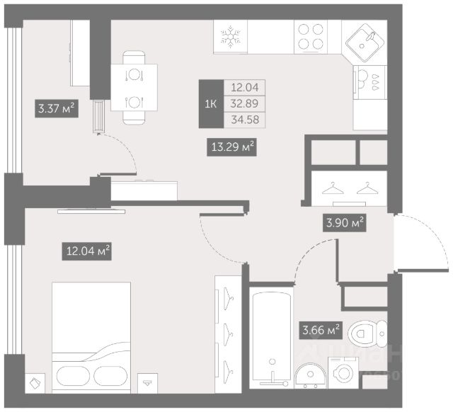 Санузлы: совмещенный, туалет, раковина, душ (если убрать душ можно поставить ванную).
