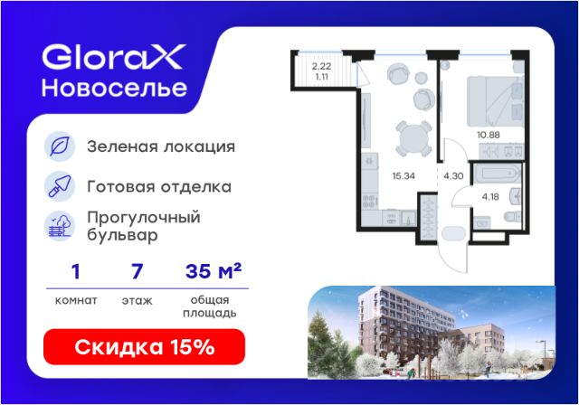 Продаётся 1-комн. квартира площадью 34,24 кв.м на 2 этаже 12 этажного дома (Корпус 4.1, Секция 1) проекта ПИК Таллинский парк. Светлый просторный подъезд на уровне земли, функциональная планировка, большие окна, без отделки. "Таллинский парк" - проект в Ленинградской области, в районе Новоселье. До станции метро "Проспект Ветеранов" - 15 минут на автомобиле, а до КАД можно доехать всего за 4 минуты. "Таллинский парк" включает 16 жилых домов, детский сад и школу. В проекте появится центральный сквер с обильным озеленением, а через весь квартал протянутся широкие пешеходные бульвары. В зелёных дворах-парках будут оборудованы современные детские и спортивные площадки, обустроены места для отдыха. На первых этажах разместятся магазины, кафе и другие сервисы. Проектом предусмотрены персональные кладовые помещения - это доступный, экономичный и удобный способ хранения сезонных и крупногабаритных вещей. Освободите свою квартиру для полноценной жизни. Район Новоселье активно развивается в городском формате: здесь уже работают детские сады, школа и магазины. Для любителей зимних видов спорта открыта круглосуточная ледовая арена Ice Rink. За покупками и развлечениями также можно быстро доехать: 10 минут - и вы в Аутлете Fashion House Таллинское, гипермаркетах Лента, Леруа Мерлен и Окей. В 10 минутах на автомобиле находится Финский залив, на берегу которого расположились объекты культурного наследия. Рядом - Константиновский парк с отреставрированным дворцом, а чуть дальше расположена усадьба Знаменка. В великолепном Петергофе вы будете уже через 20 минут. Артикул 1026100 (Застройщик ООО "СПЕЦИАЛИЗИРОВАННЫЙ ЗА СТРОЙЩИК "СТРОЙ-ЭКСПЕРТ ") [cn_sbp_1844557] Купить 1-комнатную квартиру в новостройке рядом с метро Проспект Ветеранов.