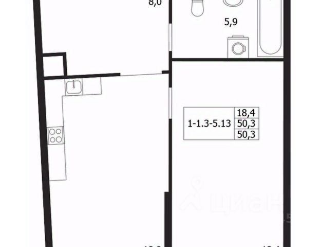 Продается 1-к квартира без отделки в ЖК "Мариинка Делюкс". Общая площадь квартиры — 47.8 кв. м, этаж 5 из 9. Тип дома — монолитный. Цена указана при 100% оплате.