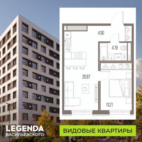 Продается однокомнатная квартира от застройщика с предчистовой отделкой в ЖК "LEGENDA Васильевского" на 2 этаже. Общая площадь: 38.71 кв.м., жилая: 11.74 кв.м., площадь просторной кухни-столовой: 17.76 кв.м. Все окна выходят на одну сторону. В квартире один совмещенный санузел. Высота потолков 2.72 м. "LEGENDA Васильевского" жилой квартал в минутной доступности от Финского залива, главного креативного хаба Санкт-Петербурга Севкабель Порта и других точек притяжения. Современные инженерные и технические решения, повышающие качество жизни TechnoBox включают в себя: стационарный и удаленный контроль дома, систему вентиляции Air Design - здоровое дыхание без лишнего шума, мультисервисную сеть, объединяющую коммуникационные системы, удаленное управление электроприборами, контроль отопления в каждом помещении, поддерживающий оптимальный температурный баланс во время "холодного" периода", датчики протечки, датчик открытия входной двери. Мультисервисная сеть (МСС) объединяет ключевые слаботочные системы дома, задавая им единый высокий стандарт работы, обеспечивая надёжность их функционирования и управления. Квартира готова к декорированию. Застройщиком сделана шумоизоляция; стены подготовлены для отделки; проведена электрика с учетом рекомендаций по расстановке мебели и бытовой техники; выровнен пол. В каждой квартире установлена взломостойкая входная дверь, окна со специальным термоизолированным алюминиевым профилем. Двор жилого комплекса "LEGENDA Васильевского" закрыт. Проект состоит из шести разноформатных корпусов с ритмичными фасадами в духе пост-конструктивизма. Геометрия жилого комплекса состоит из четко простроенных осей, чередующих открытые пространства и объемы корпусов, каждый из которых обладает своим визуальным кодом индивидуальным рисунком фасада и цветовой палитрой. Корпуса образуют периметр с общественными пространствами: площадью с кафе, магазинами и пешеходным променадом с детскими игровыми хабами, местами для спокойного отдыха и workout-зоной. Срок сдачи 4 квартал 2027 года. На территории комплекса предусмотрены теплый подземный паркинг и два наземных 4-х этажных паркинга. 1-комнатная квартира в новостройке рядом с метро Василеостровская.