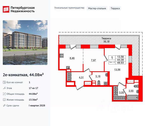 Цена со скидкой до 30% в прямой продаже от застройщика — только в этом месяце. При покупке апартаментов - паркинг за полцены. На все апартаменты действует беспроцентная рассрочка. Купите на распродаже! Покупка недвижимости в Zoom на Неве сейчас со скидкой до 30% позволит через 2 года получить доход до 6 300 000 руб. Роскошные виды на Неву. 1-к апартамент в комплексе класса бизнес-лайт Zoom на Неве на 3-м этаже. Общая площадь 35,66. Без отделки. Zoom на Неве расположен в новом месте силы рядом с центром города на первой линии Октябрьской набережной в Невском районе, всего в 7 км от исторической части Санкт-Петербурга. Большой выбор эргономичных и максимально продуманных планировок позволит каждому найти вариант по душе. Панорамные виды на Неву, благоустроенные дворы, детская игровая комната, подземный паркинг, коммерческие зоны на первом этаже, это и многое другое делает Zoom на Неве идеальным местом для жизни. Особенности: - Панорамные виды на Неву и город; - 10 мин. до Парка Строителей, 15 мин. до Лондон-молла, Ленты, Максидома, 15 мин. до метро "ул. Дыбенко", 12 мин. до КАД, 10 мин. до центра; - Единая архитектурная концепция. Сдержанные и монументальные фасады в неоклассическом стиле; - Парадный лобби для жильцов. Единый вход в комплекс с администратором, зоной ресепшн и охраной, зоной для бесконтактной доставки посылок и еды; - Подземный отапливаемый паркинг с доступом из парадной; - Доступно 3 варианта отделки на выбор: черновая, предчистовая (White Box) и чистовая; - Зоны отдыха для взрослых и детей, Wi-Fi-покрытие во дворе и в паркинге, зоны для питомцев, арт-объекты и много другое. В шаговой доступности вся необходимая инфраструктура от детских садов и школ до супермаркетов и салонов красоты; - Все происходящее контролируется видеокамерами, а покой внутренней территории и безопасность ваших детей гарантируется полным отсутствием транспорта во дворах в концепции "без машин". 1-комнатная квартира в новостройке в округе Невский в Санкт-Петербурге.