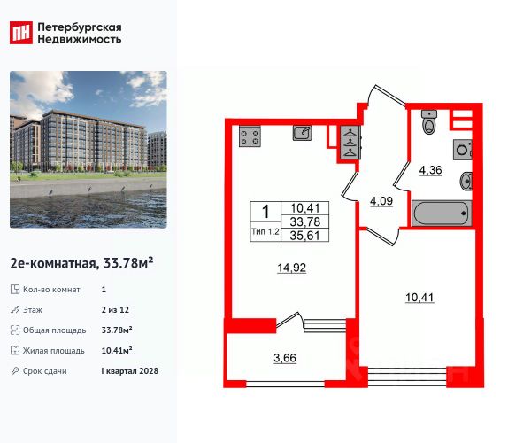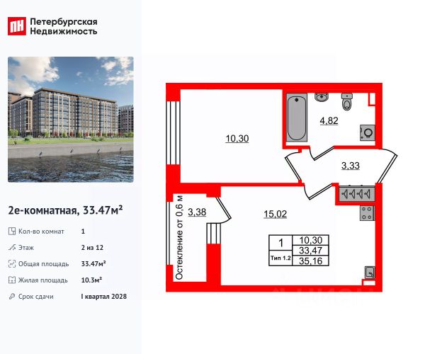 Цена со скидкой до 30% в прямой продаже от застройщика — только в этом месяце. При покупке апартаментов - паркинг за полцены. На все апартаменты действует беспроцентная рассрочка. Купите на распродаже! Покупка недвижимости в Zoom на Неве сейчас со скидкой до 30% позволит через 2 года получить доход до 6 300 000 руб. Роскошные виды на Неву. 1-к апартамент в комплексе класса бизнес-лайт Zoom на Неве на 9-м этаже. Общая площадь 35,5. Без отделки. Zoom на Неве расположен в новом месте силы рядом с центром города на первой линии Октябрьской набережной в Невском районе, всего в 7 км от исторической части Санкт-Петербурга. Большой выбор эргономичных и максимально продуманных планировок позволит каждому найти вариант по душе. Панорамные виды на Неву, благоустроенные дворы, детская игровая комната, подземный паркинг, коммерческие зоны на первом этаже, это и многое другое делает Zoom на Неве идеальным местом для жизни. Особенности: - Панорамные виды на Неву и город; - 10 мин. до Парка Строителей, 15 мин. до Лондон-молла, Ленты, Максидома, 15 мин. до метро "ул. Дыбенко", 12 мин. до КАД, 10 мин. до центра; - Единая архитектурная концепция. Сдержанные и монументальные фасады в неоклассическом стиле; - Парадный лобби для жильцов. Единый вход в комплекс с администратором, зоной ресепшн и охраной, зоной для бесконтактной доставки посылок и еды; - Подземный отапливаемый паркинг с доступом из парадной; - Доступно 3 варианта отделки на выбор: черновая, предчистовая (White Box) и чистовая; - Зоны отдыха для взрослых и детей, Wi-Fi-покрытие во дворе и в паркинге, зоны для питомцев, арт-объекты и много другое. В шаговой доступности вся необходимая инфраструктура от детских садов и школ до супермаркетов и салонов красоты; - Все происходящее контролируется видеокамерами, а покой внутренней территории и безопасность ваших детей гарантируется полным отсутствием транспорта во дворах в концепции "без машин". 1-комнатная квартира в новостройке в округе Невский в Санкт-Петербурге.