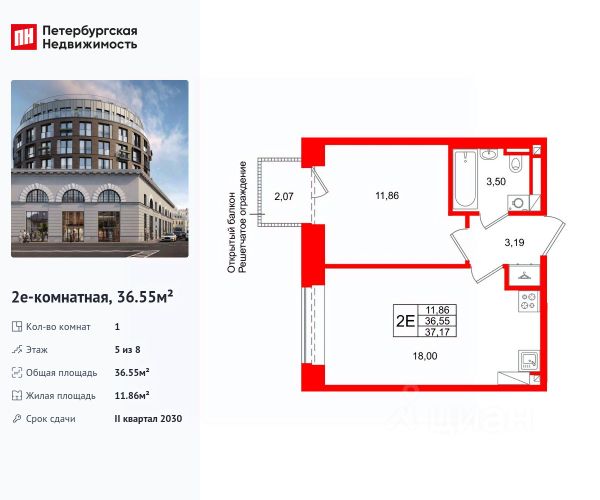 - Общая площадь: 38. 3 кв. м