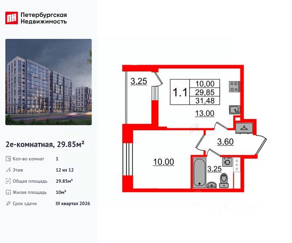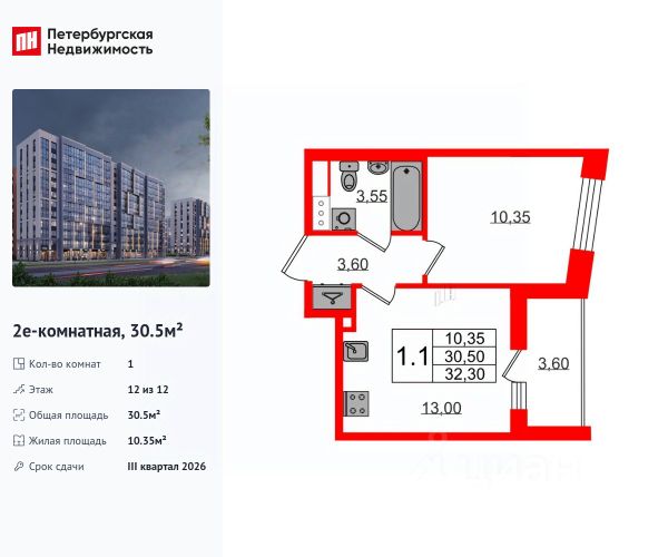 Срок сдачи 1 кв. 2026 года, срок передачи ключей до 30.09.2026.