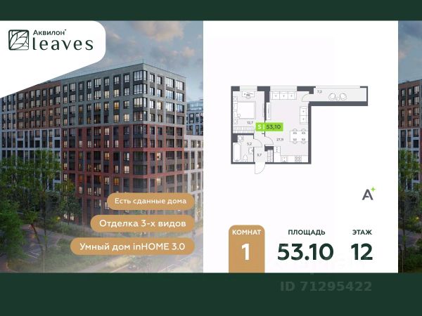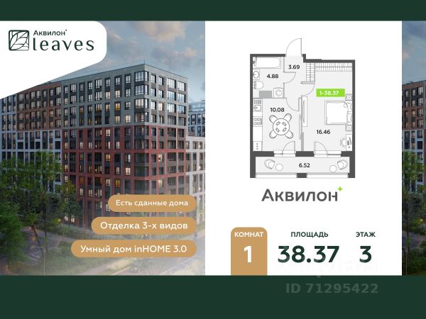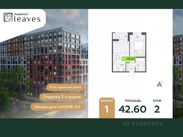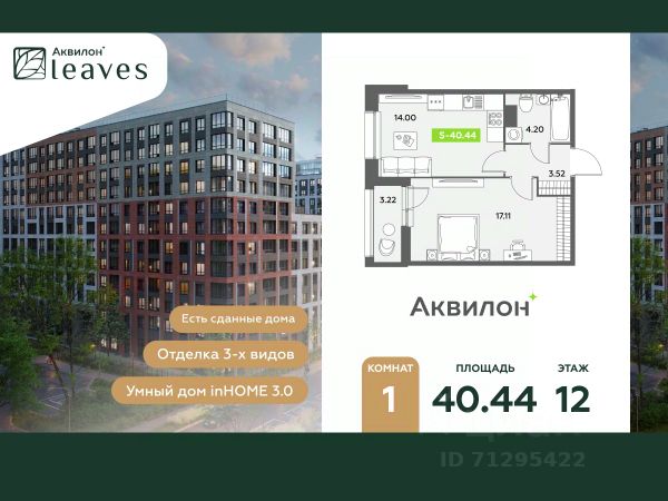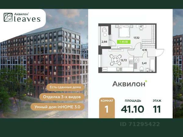 Купи квартиру в ЖК "Аквилон Leaves"! Отделка В квартире выполнена предчистовая отделка WhiteBox +Возможен дозаказ отделки в любом из 3 цветов: SAND, TERRA, GRAPHITE Отделка входит в стоимость квартиры в ДДУ ЖК "Аквилон Leaves" Жилой комплекс класса бизнес-лайт "Аквилон Leaves" воплощает идеальную синергию природы, технологий и дизайна. В одном из самых престижных районов Санкт-Петербурга мы создаем функциональную жилую среду, которая позволит максимально быстро и удобно решать бытовые вопросы, сохраняя ценное время для семьи и любимых занятий. -Малошумные лифты -Сквозные парадные -Светопрозрачные входные группы -Увеличенная высота первого этажа -Безбарьерная среда -Подземный паркинг Стандарты Группы Аквилон для вашей комфортной жизни Thermo-S экономия на коммунальных платежах за счет дополнительно утепленных стен, кровли и цоколя. Энергоэффективные окна с селективным покрытием и аргоновым заполнением Soundstop - дополнительная шумоизоляция внутренних перегородок и межэтажных перекрытий, шумозащитные окна, малошумные лифты Light-in - в квартирах устанавливаются широкоформатные окна, увеличены на 30%. Высота подоконников на уровне 60 см от пола. Vent-in - в каждой комнате есть клапаны индивидуальной вентиляции, которые обеспечивают приток свежего воздуха с улицы. inHOME умный дом в каждой квартире Интеллектуальная цифровая система, которая позволит дистанционно решать бытовые вопросы, управлять квартирой и экономить на оплате коммунальных услуг. В состав inHOME входят: IP-домофон, Face key, "умные" счетчики, датчики протечки, дистанционное отключение розеток, и т.д. Двор ваш личный парк Благоустройство двора от студии ландшафтного дизайна MEGABUDKA отсылает нас к образу зеленого листа. Современная архитектура гармонирует с окружающей средой, а экологические стандарты и "умные" системы обеспечивают ежедневный комфорт. -Зонирование на площадки для активного и спокойного отдыха. -Ландшафт с геопластикой и рельефом напоминает естественную красоту природных парков. -Всесезонные растения -Высаживаются взрослые деревья и кустарники Локация и инфраструктура Помимо разнообразной инфраструктуры, рядом с комплексом расположен Пулковский парк и сад "Дубовая роща". У жителей будут все возможности для отдыха на свежем воздухе. Велопрогулка, пробежка или летний пикник наслаждайтесь природой, не уезжая далеко загород. -10 мин. до м. Московская -15 мин. до м. Звездная -15 мин. до аэропорта Пулково -30 мин. до Невского пр. #2sD0fs Продается 1-комнатная квартира в новостройке в округе Звёздное в Санкт-Петербурге.
