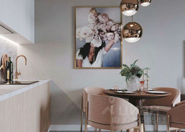 Сама квартира расположена на 5 этаже. Чистовая отделка — мрамор. Общая площадь Евро двухкомнатной квартиры 36.8 кв.м