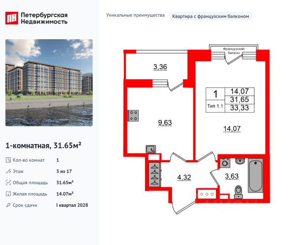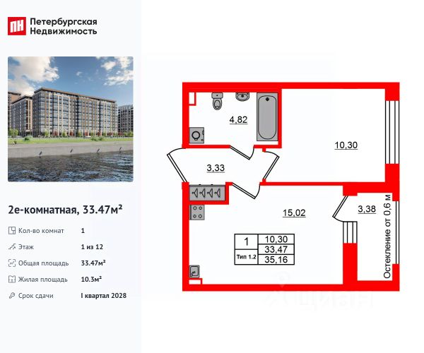 Продается уютная 1-комнатная квартира от застройщика в жилом комплексе "Setl Ривьера" в активно развивающимся Невском районе. До метро можно добраться на транспорте всего за 10 минут. Удобная, классическая, функциональная европланировка, большая кухня-гостиная 15.02 м², вместительная прихожая 3.61 м². Общая площадь квартиры - 33.03 м², жилая 10.36 м², высота потолка 2.92 м. Квартира продается с отделкой "NORD LINE WHITE ВК NEW". Что особенного в ЖК "Setl Ривьера"? • Первая береговая линия Невы. 5 км до центра Петербурга • "Активити парк" - пространство для занятий спортом и отдыха. "Ривьера парк" с променадом и панорамной ротондой • Масштабные дворы 10 000 кв.м. с авторским ландшафтным дизайном • Двухуровневые единые входные группы • Видовые квартиры с террасами, каминами и саунами 1-комнатная квартира в новостройке на набережной Октябрьская в Санкт-Петербурге.