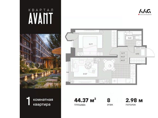 В историческом центре с особой атмосферой Петроградской стороны представлена 1 комнатная квартира на 5 этаже общей площадью 37.8 кв.м. В корпусе KLASSIK представлены уникальные квартиры для ценителей формата премиум. Пространство вокруг дома вариативно и открывает возможности для отдыха всей семьей на природе. В корпусе расположена зеленая гостиная - полуприватная зона на 2-4 человека с деревянными креслами и диваном, а также детская площадка, интегрированная в сосны. Мультиформатный AVANT соединил вайб Петроградской стороны, индустриальный колорит и уникальную историю локации, органическую архитектуру и множество форматов жилой, коммерческой, сервисной, развлекательной и социальной инфраструктуры, сократив высоту и объем застройки в пользу природных зон, променадов и частного парка. Элитный жилой комплекс располагается в окружении самых престижных заведений и ключевых транспортных артерий Петербурга. AVANT придется по душе тому, кто имеет внутреннюю силу и свободу от стереотипов. Главным общественным пространством и инфраструктурной артерией квартала станет пешеходный променад протяженностью 200 метров для отдыха в привычном для каждого формате. Здесь кафе, рестораны и бутики, фитнес-центр и детские площадки чередуются с уединенными зонами отдыха, окруженными зеленью. Уникальные форматы жилья созданы на основе конструктивных особенностей исторического здания фабрики. Особенности классического лофта задают вариативность форматов: - Индустриальный шик с толщиной стен до 1 метра; - Панорамные окна; - Многоуровневые пространства; - Воздушные антресольные этажи. Такого в Петербурге еще нет. В новом проекте ААG на Пионерской новые смыслы, новые возможности, смелые решения. AVANТ вaша вcеленная Livе Wоrk Рlay Lеarn для жизни, отдыха и paбoты. - Семейная ипотека 4,3% на весь период кредитования - Траншевая ипотека с платежом 2013 рублей в месяц до ввода в эксплуатацию - Программы рассрочки 0% без удорожания стоимости квартиры - Отделка WHITE BOX в подарок. Купить 1-комнатную квартиру в новостройке на улице Пионерская в Санкт-Петербурге.