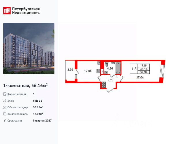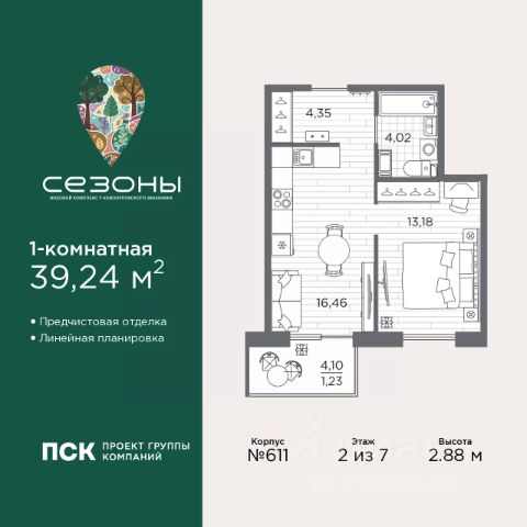 Продается 1-комн. квартира с предчистовой отделкой в ЖК "Сезоны" на 5 этаже. Общая площадь: 38.29 кв.м., жилая: 13.05 кв.м., площадь просторной кухни-столовой: 15.7 кв.м. Все окна выходят на одну сторону. В квартире один балкон, один совмещенный санузел. Высота потолков 2.88 м. Дом монолитный, многоподъездный, высотой 7 этажей. Квартира находится в 1-й секции в корпусе 611. На этаже 4 квартиры. В подъезде 1 грузовой лифт. Начало строительства - 4 квартал 2025 года. Окончание строительства - 2 квартал 2028 года. Оформление сделки по договору долевого участия. Видовой жилой комплекс "Сезоны" от ГК ПСК возводится в одном из самых востребованных и престижных районов Санкт-Петербурга - Приморском, рядом с Суздальским и Выборгским шоссе. Такое расположение обеспечивает удобный выезд в разные части города, сочетая городской комфорт с близостью к природе. Всего в 50 метрах находится природный заказник "Новоорловский" и речка Каменка, а в пешей доступности - Суздальские озёра. Приморский район отличается развитой социальной и транспортной инфраструктурой. Здесь расположены крупные торговые и деловые центры, современные спортивные объекты, медицинские учреждения, магазины, кафе и рестораны. Комплекс включает четыре корпуса, ввод которых в эксплуатацию запланирован на 2028 год. Проект и прилегающий микрорайон разработаны в соответствии с концепцией "15-минутного города", при которой вся необходимая инфраструктура находится в шаговой доступности. В ближайшем окружении - две школы, пять детских садов, магазины, кафе, салоны красоты, банковские отделения и пункты выдачи заказов. Также предусмотрены два четырёхъярусных паркинга с лифтами на 288 машиномест. О застройщике ГК ПСК - один из крупнейших девелоперов Санкт-Петербурга с более чем 18-летней историей. Компания реализует проекты во всех сегментах недвижимости - от премиальных жилых комплексов до масштабных кварталов комфорт-класса и апарт-отелей. По данным портала ЕРЗ.РФ, ПСК входит в ТОП-3 крупнейших застройщиков Санкт-Петербурга по объёму текущего строительства. Портфель компании превышает 3 млн кв. м жилой и коммерческой недвижимости. Все объекты сдаются строго в срок и отличаются высоким уровнем архитектурных и инженерных решений. 1-комнатная квартира в новостройке в районе Приморский в Санкт-Петербурге.