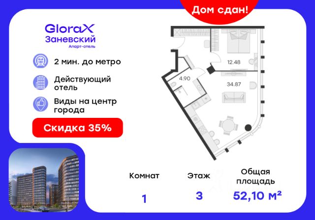 Продается 1-комн. апартамент на 8-м этаже в сданном Апарт-комплексе бизнес-класса "GloraX Заневский". Ключи сразу! Общая площадь лота составляет 49,45 кв. м, из которых 13,19 кв. м отведено под жилую. Номер апартамента - 840. Преимущества: - Полная чистовая отделка - Возможность покупки меблировка и техника - Вход по ключ-карте - Прачечная на 1 этаже - Возможность дозаказа отельного сервиса - Программы доходности - Летний бар и променад - Воркаут площадка - Pet-friendly Апартаменты "GloraX Заневский" - проект бизнес-класса с развитой инфраструктурой, удовлетворяющей все потребности самых взыскательных гостей. Располагается в одном из наиболее перспективных, районов Петербурга в 2х минутах от метро "Ладожская" и в 10 минутах от Невского проспекта. В "GloraX Заневский" есть все, что необходимо для комфортной жизни, работы и отдыха. Инфраструктура, покрывающая все потребности и ожидания собственников и арендаторов. В радиусе 150 метров находятся супермаркеты с возможностью доставки продуктов прямо до дверей апартаментов. На 1000 кв. м. общественных пространств расположится уютный лобби-бар, ресторан мировой кухни на 80 человек и оборудованные коворкинги. В апартаментах "GloraX Заневский" выполнена современная отделка с использованием высококачественных экологичных материалов. В проекте предусмотрен подземный отапливаемый паркинг на 100 мест, куда можно спуститься на лифте прямо от дверей апартаментов. Узнайте подробности в Отделе продаж. Купить 1-комнатную квартиру в новостройке на проспекте Энергетиков в Санкт-Петербурге.
