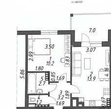 -Общая площадь 30.7 кв.м. вместе с лоджией 34,7 кв.м.