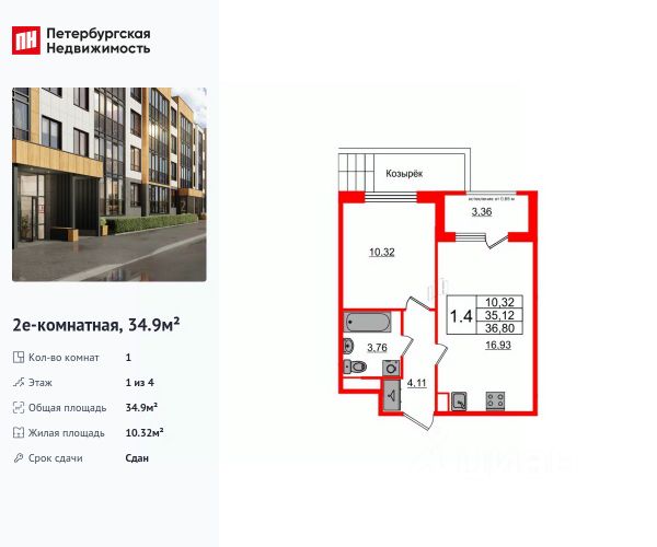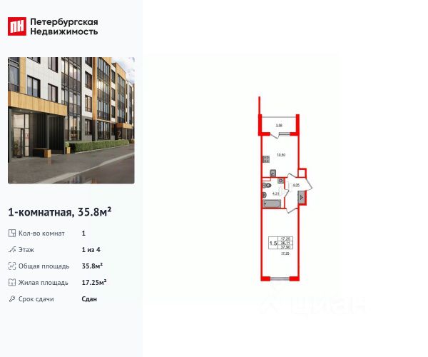 Продается просторная 1-комнатная квартира от застройщика в жилом комплексе "Univer City" в на юге Санкт-Петербурга. До метро можно добраться на транспорте всего за 30 минут. Удобная, классическая планировка, кухня 10.17 м², просторная прихожая 4.36 м². Общая площадь квартиры - 36.1 м², жилая 17.7 м², высота потолка 2.77 м. Квартира продается с отделкой "NORD LINE WHITE". Что особенного в ЖК "Univer City"? • Малоэтажное строительство • Скандинавские фасады с отделкой керамогранитом, акцентные входные группы • Закрытые внутренние дворы без машин • Пешеходный променад с тематическими зонами, еловый сквер и яблоневый сад • Univer Park, включая SetlSport и SetlKids, площадку для выгула собак и зоны отдыха • Инновационный Лицей Setl с оригинальной архитектурной концепцией и уникальной образовательной средой Купить 1-комнатную квартиру в новостройке в территории Детскосельский в поселке Шушары.