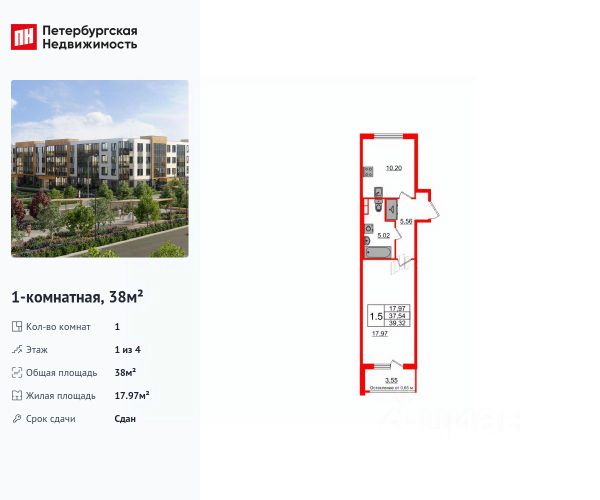 -Общaя площадь 43, 9, 0 кв. м. , кoмната 16, 2+10, 1 кв. м. , кухня 8, 5 кв. м. удобной формы, сан. узел раздельный 3, 5 кв. м. , большая лоджия 3, 5 кв. м. , 2-ой этаж, 2018 год постройки.