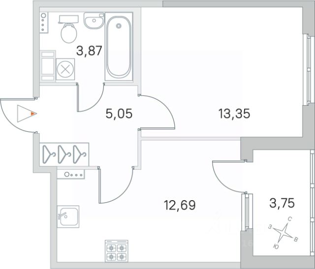 Жилой комплекс комфорт-класса находится на южном берегу Финского залива, рядом с дворцово-парковыми ансамблями Стрельны и Петергофа, в окружении дворцово-парковых ансамблей: Стрельна, Константиновский дворец, Петергоф, парк Новознаменка и Сосновая поляна, Шунгеровский лесопарк. Также в ЖК представлены два собственных парка: парадный верхний для спокойного отдыха, нижний для активных занятий. Малоэтажный жилой комплекс: всего 4 этажа, соответствующий стандартам экологичного строительства, энергоэффективности, экономии и комфорта. Более половины квартир с увеличенной высотой потолка: от 3 до 5,5 м. Также есть квартиры с саунами, возможностью установки камина и палисадника. Архитектура ЖК выполнена в единой концепции — имеет строгий вертикальный ритм со светлым невесомым низом и контрастным темным верхом. В фасадах ЖК строгость архитектурных форм сочетается с большим количеством остекления. Природная цветовая гамма в светлых оттенках с горизонтальным рустом. Применение современных трендовых материалов, таких как панели с диоксидом титана, улучшающие микроклимат жилого комплекса. Контрастные темные оттенки придают акцент последним этажам и входным группам коммерческих помещений. 50% квартир High Flat с увеличенными окнами, а значит, больше естественного солнечного света в квартирах и экономия на электроэнергии в светлое время суток. В ЖК используются стекло алюминиевые конструкции остекления лоджий. Темные оттенки оконного профиля, балконов и лоджий придают фасаду выразительность, а большое количество остекления делает квартиры не только светлее, но и визуально просторнее. Дворы в ЖК свободны от машин и огорожены по периметру: приватные уютные дворы-патио, палисадники, площадки для отдыха взрослых, площадка для йоги, детская площадка и спортивная площадка. Интерьеры холлов выполнены в единой стилистике с общим архитектурным решением жилого комплекса. Стены холлов повторяют светлую цветовую гамму фасадов, а детали интерьера и потолок — вторят темным акцентам на фасаде здания. В то же время в холлах больше стекла и металла. Вместе со встроенным освещением они придают интерьеру строгость и лаконичность. В холлах и местах общего пользования будут применяться датчики движения и фотореле, лифты будут оборудованы системой рекуперации энергии. Также в местах общего пользования будут установлены лампы с ультрафиолетовым обеззараживанием. Для детей в ЖК запланированы: школа на 700 мест с бассейном, детский сад на 280 мест с бассейном, детский сад на 75 мест, детские клубы. В цокольном этаже жилого комплекса запланированы кладовые помещения, а также подземный паркинг. Системой видеонаблюдения обеспечены: периметр здания, входы в подъезды, лифтовой холл 1-го этажа, лифтовые кабины, въезд и выезд автостоянки, детские площадки. 1-комнатная квартира в новостройке в поселке Стрельна в Санкт-Петербурге.