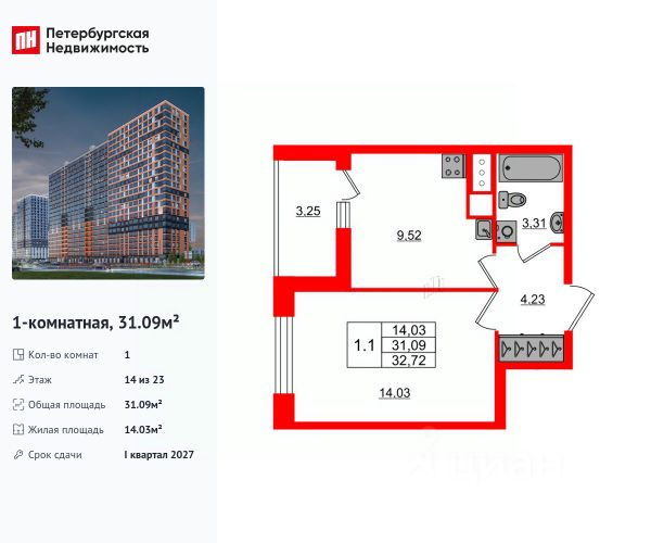 Продается квартира площадью 35.47 м² на 3 этаже 1 секции в Речной квартал от компании ГК "ТРЕСТ". Площадь кухни 13.87 м². Семейный жилой комплекс комфорт-класса "Речной квартал" от Группы компаний "ТРЕСТ" расположен в Невском районе Петербурга на пересечении Октябрьской набережной и Русановской улицы. Первая очередь квартала состоит из трёх корпусов, расположенных лучеобразно, чтобы максимально использовать естественное освещение и обеспечить видовые точки на локацию. Проект выделяется современными архитектурными решениями и дизайном. Концепция развития и благоустройства придомовой территории разделена на зоны отдыха, досуга и игровые площадки с учетом возраста и потребностей детей и взрослых. Квартал рассчитан на семейных покупателей, поэтому здесь нет студий: только одно-, двух- и трёхкомнатные квартиры. В проекте представлены квартиры с кухнями-гостиными, мастер-спальнями, гардеробными и кладовыми. "Речной квартал" - современный жилой комплекс с разнообразным благоустройством придомовой территории, просторными европланировками, закрытой охраняемой территорией и подземными паркингами. На территории комплекса уже функционирует детский сад на 110 мест. Также в квартале будет построена общеобразовательная школа на 475 мест с бассейном и стадионом. Открытие школы запланировано на 2029 год. Квартиры в ЖК "Речной квартал" можно приобрести с готовой отделкой от застройщика. Для покупателей квартир предусмотрено два варианта чистовой отделки "Ваниль" и "Шоколад". Чистовая отделка в квартирах ЖК "Речной квартал" предполагает монтаж натяжных потолков, укладку ламината, оклейку стен обоями под покраску, установку светильников и межкомнатных дверей. При отделке новой квартиры применяются качественные, натуральные и экологичные материалы, монтируется стильная импортная сантехника европейских брендов. В объявлении указана стоимость квартиры при 100% оплате. При других формах оплаты - базовую стоимость квартиры уточняейте на официальном сайте компании или у менеджера отдела продаж. Застройщик АО "Специализированный застройщик "Строительный трест".