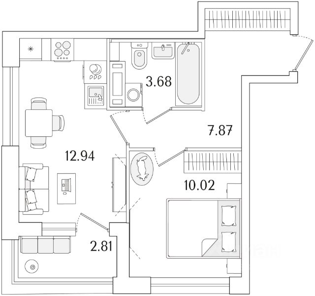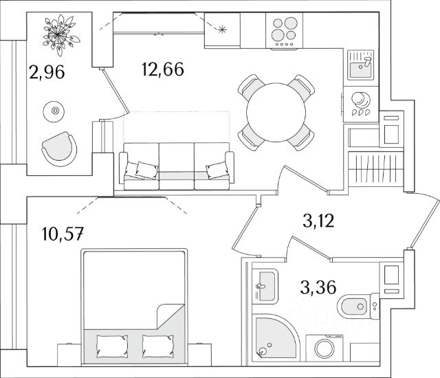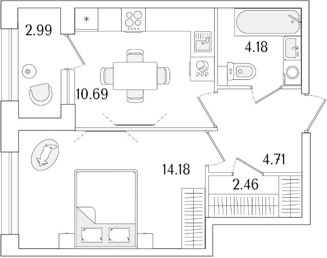 Квартира с одной спальней в комплексе "Сампсониевский 32" от LEGENDA на 7 этаже.