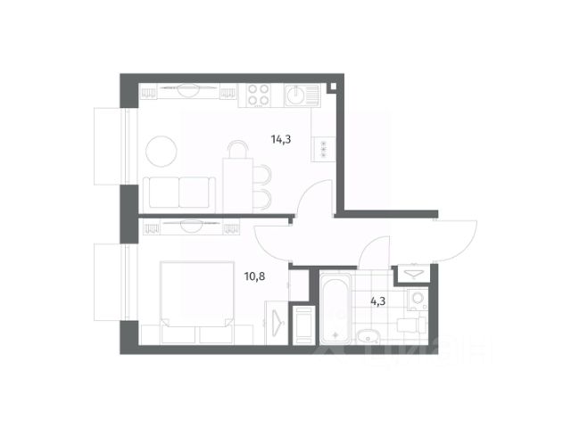 1-комн. квартира с предчистовой отделкой в ЖК "Северный ветер" на 11 этаже. Общая площадь: 40.82 кв.м., жилая: 13.5 кв.м., площадь просторной кухни-столовой: 17.6 кв.м. Все окна выходят на одну сторону. В квартире один балкон и одна лоджия, один совмещенный санузел. Высота потолков 3.1 м.
