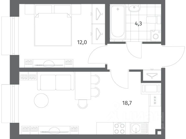1-комн. квартира от застройщика с предчистовой отделкой в ЖК "Северный ветер" на 11 этаже. Общая площадь: 40.82 кв.м., жилая: 13.5 кв.м., площадь просторной кухни-столовой: 17.6 кв.м. Все окна выходят на одну сторону. В квартире один балкон и одна лоджия, один совмещенный санузел. Высота потолков 3.1 м.