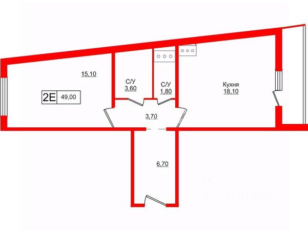 Продается 1-к квартира без отделки в ЖК "Мариинка Делюкс". Общая площадь квартиры — 48.5 кв. м, этаж 2 из 9. Тип дома — монолитный. Цена указана при 100% оплате.