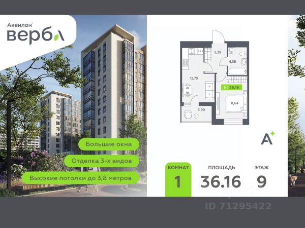 Продаётся 1-комн. квартира площадью 37,1 кв.м на 9 этаже 15 этажного дома (Корпус 1, Секция 2) проекта ПИК Янинский лес. Светлый просторный подъезд на уровне земли, функциональная планировка, большие окна, c отделкой. Жилой квартал "Янинский лес" возводится в районе Янино-1 Ленинградской области. Автобусная остановка находится в 3 минутах пешком. Проект расположен вплотную к восточной границе Санкт-Петербурга - в 4 минутах от КАД. До метро "Ладожская" - 23 минуты на общественном транспорте. До исторического центра города можно доехать за 25 минут на автомобиле. "Янинский лес" - масштабный проект из 32 жилых корпусов, где будет всё для комфортной жизни. Здесь предусмотрены надземные паркинги, откроются детские сады, школа и поликлиника. Кроме этого, появятся места, в которых можно проводить свободное время: ледовая арена и торговый центр площадью больше 3000 м². Жилой район строится по всем правилам ПИК-Стандарта: в зелёных дворах-парках появятся современные детские и спортивные площадки, пешеходный бульвар и другие места для отдыха. На первых этажах разместятся магазины, кафе и другие сервисы. Во дворах не будет автомобилей, а для гостей предусмотрены парковочные места. Проект окружают лесные массивы. В пешей доступности находится Ржевский лесопарк: летом там можно гулять и собирать грибы, а зимой кататься на лыжах. Также рядом расположен памятник природы Колтушские высоты - парк с обустроенными экотропами и веломаршрутом. А главное место притяжения местных жителей - озеро с обустроенным местом для пикников. Артикул 1048925 (Застройщик ООО "СПЕЦИАЛИЗИРОВАННЫЙ ЗАСТРОЙЩИК"ЭКСТРАГРАД") [cn_sbp_1828258]