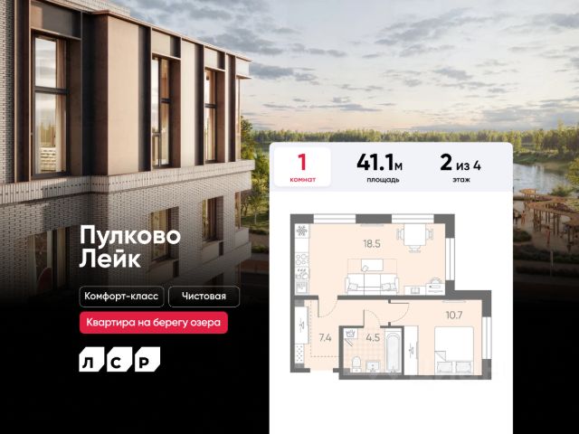 Продается 1-комнатная квартира в ЖК "Пулково Лейк" на 4 этаже. Общая площадь составляет 51.70 кв. м. Квартира с чистовой отделкой. Жилой комплекс "Пулково Лейк" располагается по адресу Санкт-Петербург, Московский. Пулково Лейк - проект малоэтажной застройки на берегу озера на границе Московского и Пушкинского районов. Дома высотой всего 4 этажа, квартиры от уютных студий до трехкомнатных квартир для большой семьи. Широчайший выбор планировок, включая квартиры с мастер-спальнями, патио, каминами, саунами, двухуровневые квартиры. Школа, детские сады, парк на берегу озера и выезды на Пулковское и Петербургское шоссе. Расположение: • 5 мин на авто до Аэропорта Пулково; • 10 мин на авто до станций метро "Московская; • 10-15 мин на авто до городов Пушкина, Павловска и Гатчины; • 20 мин на авто до центра Санкт-Петербурга. Квартиры в проекте сдаются с предчистовой и чистовой отделкой Соmfоrt Stоnе и Соmfоrt Wооd по современным стандартам - Вы можете сами выбрать отделку, подходящую именно Вам. Дома оборудованы самыми современными инженерными системами и "Умным домом". В рамках проекта будет построена современная школа на 925 мест и 2 детских сада на 160 и 240 мест, выезды на Пулковское и Петербургское шоссе, а также храм рядом со сквером "Пулковский рубеж". Общественное пространство вдоль берега озера превратится во всесезонный парк, в котором найдется место для любых активностей от пробежек, катания на САПах и велосипедах до отдыха в шезлонгах и любования закатом солнца. Зимой будет работать каток, проложен лыжный маршрут, предусмотрено место для новогодней елки и горок для детей. Для Ваших питомцев - площадка для выгула собак. Преимущества: • Высота потолков от 2,6 до 4,5 м; • Уникальные планировки; • Парк на берегу озера; • Система "Умный дом"; • Дворы без машин; • Колясочная в парадной; • Видеонаблюдение в холлах, на первом этаже, в лифтах и в паркингах. Успейте приобрести квартиру на выгодных условиях! Чтобы узнать подробности, обращайтесь за консультацией по телефону. Купить 1-комнатную квартиру от застройщика в районе Пушкинский в Санкт-Петербурге.