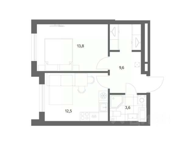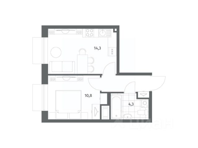 1-комн. квартира от застройщика с предчистовой отделкой в ЖК "Северный ветер" на 6 этаже. Общая площадь: 40.03 кв.м., жилая: 13.7 кв.м., площадь просторной кухни-столовой: 12.6 кв.м. Все окна выходят на одну сторону. В квартире один совмещенный санузел. Высота потолков 2.98 м.