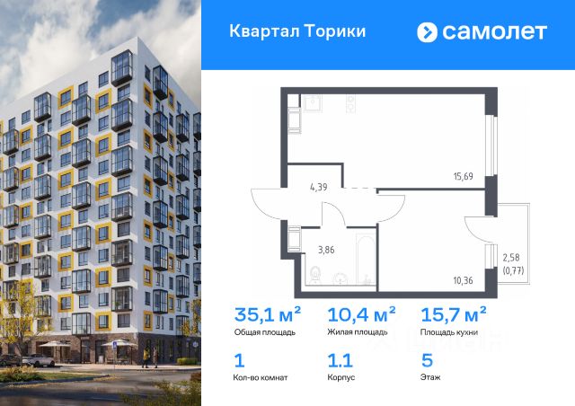 Строим кварталы для жизни с заботой о будущем. Предлагается 1-комнатная квартира комфорт-класса 41,36 кв.м в корпусе 1.1 на 3 этаже, в ЖК "Квартал Торики" Квартира с предчистовой отделкой. Доступность дополнительных опций уточняйте у застройщика. Приобрести квартиру возможно по специальным акциям от застройщика, с текущими условиями акций можно ознакомиться в блоке "Акций". Цена динамическая и может отличаться, уточняйте актуальность у застройщика. Жилой комплекс "Квартал Торики" — комфортное место для семьи. Из окон открывается голубое небо, а все необходимое находится рядом. До центра Санкт-Петербурга — 40 минут на авто, до метро "Проспект Ветеранов" — 20 минут, рядом три автобусные остановки. Всего 1520 минут пешком до Гореловского озера для прогулок и пикников. Полежаевский и Южно-Приморский парки подходят для выгула собак, а набережная канала реки Дудергофки — для велосипедных прогулок. В квартале — школа и 2 детских сада. Утро можно начать в кофейне на первом этаже, а вечером — закупить продуктов. Современные монолитные дома высотой 12 этажей выполнены в нейтральной цветовой гамме с яркими акцентами. Дворы с уютными "лесными гостиными" закрыты для посторонних — дети на игровых площадках будут в безопасности. На территории есть многоуровневые и плоскостные паркинги. Входы в подъезды без ступенек, предусмотрены кладовые и помещения для колясок и велосипедов. 1-комнатная квартира с отделкой в городском поселении Виллозское Ломоносовского района.