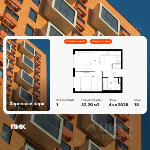 Продаётся 1-комн. квартира площадью 36,08 кв.м на 2 этаже 24 этажного дома (Корпус 5, Секция 2) проекта ПИК Заречный парк. Светлый просторный подъезд на уровне земли, функциональная планировка, большие окна, c отделкой. Жилой квартал "Заречный парк" расположен в районе Новое Девяткино Ленинградской области. В 7 минутах на автомобиле - станция метро "Девяткино", до КАД - 10 минут на машине. В 2026 году будет достроена шестиполосная трасса в обход Мурино, примыкающая к Пискарёвскому проспекту. Она станет дополнительным выездом на КАД для жителей "Заречного парка". Проект включает восемь домов высотой от 15 до 24 этажей, три многоуровневых паркинга, детский сад и школу. В зелёных дворах-парках будут оборудованы современные детские и спортивные площадки, обустроены места для отдыха. На первых этажах разместятся магазины, кафе и другие сервисы. Планировки продуманы так, чтобы каждый квадратный метр жилой площади можно было эффективно использовать. Все квартиры сдаются с готовой отделкой. Артикул 1021771 (Застройщик ООО "СПЕЦИАЛИЗИРОВАННЫЙ ЗАСТРОЙЩИК ИНВЕСТАЛЬЯНС") [cn_sbp_1822120] Купить 1-комнатную квартиру с отделкой в деревне Новое Девяткино Всеволожского района.