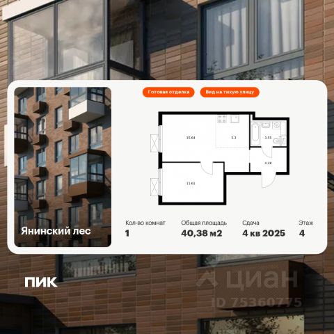 Продаётся 1-комн. квартира площадью 40,37 кв.м на 3 этаже 15 этажного дома (Корпус 7, Секция 1) проекта ПИК Янинский лес. Светлый просторный подъезд на уровне земли, функциональная планировка, большие окна, c отделкой. Жилой квартал "Янинский лес" возводится в районе Янино-1 Ленинградской области. Автобусная остановка находится в 3 минутах пешком. Проект расположен вплотную к восточной границе Санкт-Петербурга - в 4 минутах от КАД. До метро "Ладожская" - 23 минуты на общественном транспорте. До исторического центра города можно доехать за 25 минут на автомобиле. "Янинский лес" - масштабный проект из 32 жилых корпусов, где будет всё для комфортной жизни. Здесь предусмотрены надземные паркинги, откроются детские сады, школа и поликлиника. Кроме этого, появятся места, в которых можно проводить свободное время: ледовая арена и торговый центр площадью больше 3000 м². Жилой район строится по всем правилам ПИК-Стандарта: в зелёных дворах-парках появятся современные детские и спортивные площадки, пешеходный бульвар и другие места для отдыха. На первых этажах разместятся магазины, кафе и другие сервисы. Во дворах не будет автомобилей, а для гостей предусмотрены парковочные места. Проект окружают лесные массивы. В пешей доступности находится Ржевский лесопарк: летом там можно гулять и собирать грибы, а зимой кататься на лыжах. Также рядом расположен памятник природы Колтушские высоты - парк с обустроенными экотропами и веломаршрутом. А главное место притяжения местных жителей - озеро с обустроенным местом для пикников. Артикул 914959 (Застройщик ООО "СПЕЦИАЛИЗИРОВАННЫЙ ЗАСТРОЙЩИК"ЭКСТРАГРАД") [cn_sbp_1776469] Продам 1-комнатную квартиру с отделкой в городском поселении Заневское Всеволожского района.
