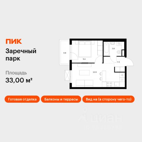 Продаётся 1-комн. квартира площадью 33,29 кв.м на 11 этаже 24 этажного дома (Корпус 5, Секция 2) проекта ПИК Заречный парк. Светлый просторный подъезд на уровне земли, функциональная планировка, большие окна, c отделкой. Жилой квартал "Заречный парк" расположен в районе Новое Девяткино Ленинградской области. В 7 минутах на автомобиле - станция метро "Девяткино", до КАД - 10 минут на машине. В 2026 году будет достроена шестиполосная трасса в обход Мурино, примыкающая к Пискарёвскому проспекту. Она станет дополнительным выездом на КАД для жителей "Заречного парка". Проект включает восемь домов высотой от 15 до 24 этажей, три многоуровневых паркинга, детский сад и школу. В зелёных дворах-парках будут оборудованы современные детские и спортивные площадки, обустроены места для отдыха. На первых этажах разместятся магазины, кафе и другие сервисы. Планировки продуманы так, чтобы каждый квадратный метр жилой площади можно было эффективно использовать. Все квартиры сдаются с готовой отделкой. Артикул 1021893 (Застройщик ООО "СПЕЦИАЛИЗИРОВАННЫЙ ЗАСТРОЙЩИК ИНВЕСТАЛЬЯНС") [cn_sbp_1841788]