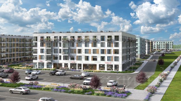 В составе квартала: 30 пятиэтажных домов, школа со спортивным стадионом, 2 детских сада с бассейнами, наземные и подземные паркинги, центральный зеленый бульвар с рlаy hub и местами отдыха. Территория квартала зонирована таким образом, чтобы автомобильные и пешеходные потоки и не пересекались. Прогулочные и велосипедные дорожки отделены от автомобильных проездов зелеными насаждениями. Дворы закрыты для машин.