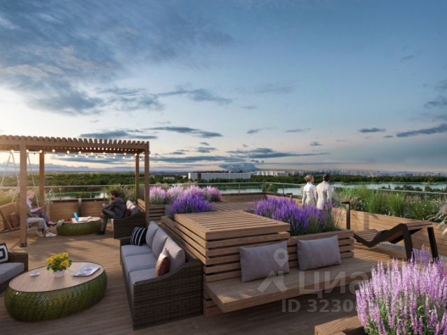 -Приватные лаундж-зоны на крыше дома с панорамными видами на карьер и лесной массив.