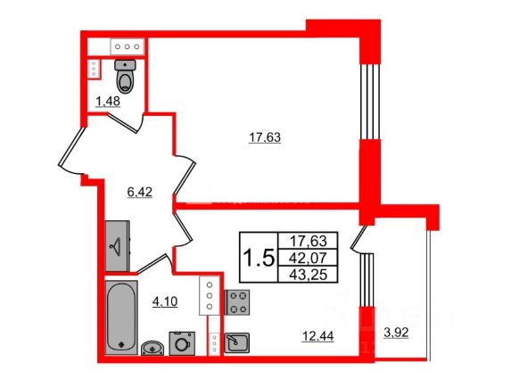-Просторная кухня-гостинная-15.14 м.кв. с выходом на застеклённую лоджию - 3.62 м.кв. Уютная комната - 11.74 м.кв. Площадь прихожей 4.23 м.кв.