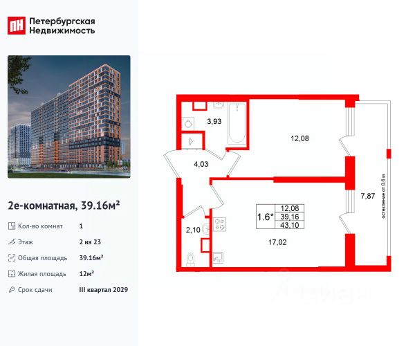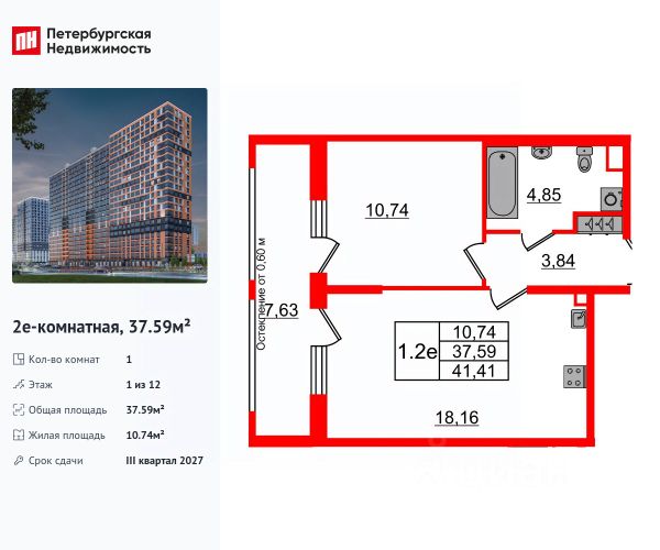 Цена действует при 100% оплате и на определенные ипотечные программы. Подробности — в отделе продаж по телефону. Продается 1-комнатная квартира в ЖК "Октябрьская набережная" на 13 этаже. Общая площадь составляет 37.80 кв. м. Квартира с чистовой отделкой . Жилой комплекс "Октябрьская набережная" располагается по адресу Санкт-Петербург, Невский. Октябрьская набережная - жилой комплекс на берегу Невы, который отличается живописными видами и удобным местоположением: в окрестностях ЖК есть всё необходимое для комфортной жизни. Расположение: • 2 минуты пешком до набережной Невы; • 7 минут до станции метро "Улица Дыбенко" на автомобиле; • 8 минут до Большого Обуховского моста на автомобиле; • 15 минут до ТРК "Лондон Молл" на автомобиле. Будущие жильцы могут обустроить квартиру по своему вкусу: предлагается 2 вида отделки - уютный темный "Comfort Wood" и легкий светлый "Comfort Stone". Отделка выполняется из качественных материалов: прочный ламинат с фактурой светлого дерева или белого камня, светлые обои под покраску, лаконичные межкомнатные двери. Вход в парадные расположен на уровне земли и создает доступную среду для пожилых людей, людей с ограниченными возможностями и мам с колясками. На цокольном этаже находятся кладовые, которые позволят освободить пространство квартиры от лишних вещей. Во всех парадных расположены колясочные, рядом с ними - велопарковки. На территории комплекса есть всё для любителей активного отдыха: спортивные площадки, уличные тренажеры, велодорожки, места для игры в баскетбол и волейбол. Спортсмены могут насладиться живописными видами во время пробежки вдоль набережной. В зелёных и облагороженных дворах есть всё и для семей с детьми: тематические площадки, детский сад и даже школа. Комфортная среда для питомцев - еще одно преимущество "Октябрьской набережной": рядом с домами находится площадка для выгула собак. Для удобства автомобилистов на территории комплекса устроены крытые паркинги с безопасными охраняемыми выездами и большим количеством машино-мест. В пешей доступности расположены супермаркеты, кафе, парикмахерские, отделения банков. Преимущества: • Первая береговая линия • Двор без машин • Доступная среда • Развитая инфраструктура • Школа и детский сад во дворе • Близость к метро Успейте приобрести квартиру на выгодных условиях! Чтобы узнать подробности, обращайтесь за консультацией по телефону.