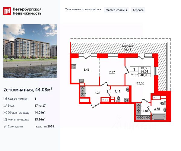 Цена со скидкой до 30% в прямой продаже от застройщика — только в этом месяце. При покупке апартаментов - паркинг за полцены. На все апартаменты действует беспроцентная рассрочка. Купите на распродаже! Покупка недвижимости в Zoom на Неве сейчас со скидкой до 30% позволит через 2 года получить доход до 6 300 000 руб. Роскошные виды на Неву. 1-к апартамент в комплексе класса бизнес-лайт Zoom на Неве на 3-м этаже. Общая площадь 41,12. Предчистовая отделка. Zoom на Неве расположен в новом месте силы рядом с центром города на первой линии Октябрьской набережной в Невском районе, всего в 7 км от исторической части Санкт-Петербурга. Большой выбор эргономичных и максимально продуманных планировок позволит каждому найти вариант по душе. Панорамные виды на Неву, благоустроенные дворы, детская игровая комната, подземный паркинг, коммерческие зоны на первом этаже, это и многое другое делает Zoom на Неве идеальным местом для жизни. Особенности: - Панорамные виды на Неву и город; - 10 мин. до Парка Строителей, 15 мин. до Лондон-молла, Ленты, Максидома, 15 мин. до метро "ул. Дыбенко", 12 мин. до КАД, 10 мин. до центра; - Единая архитектурная концепция. Сдержанные и монументальные фасады в неоклассическом стиле; - Парадный лобби для жильцов. Единый вход в комплекс с администратором, зоной ресепшн и охраной, зоной для бесконтактной доставки посылок и еды; - Подземный отапливаемый паркинг с доступом из парадной; - Доступно 3 варианта отделки на выбор: черновая, предчистовая (White Box) и чистовая; - Зоны отдыха для взрослых и детей, Wi-Fi-покрытие во дворе и в паркинге, зоны для питомцев, арт-объекты и много другое. В шаговой доступности вся необходимая инфраструктура от детских садов и школ до супермаркетов и салонов красоты; - Все происходящее контролируется видеокамерами, а покой внутренней территории и безопасность ваших детей гарантируется полным отсутствием транспорта во дворах в концепции "без машин". Продается 1-комнатная квартира с отделкой рядом с метро Проспект Большевиков.