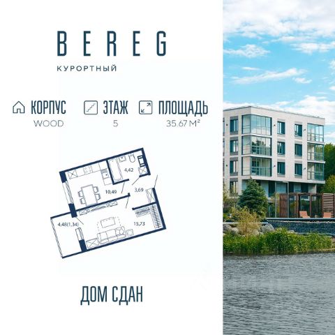 Апартамент 522 площадью 40,19 кв.м. в корпусе Wood с видом во двор Дом сдан!!! О проекте: "Bereg. Курортный" первый проект петербургского девелопера ELEMENT в Санкт-Петербурге, который был сдан в мае 2024 года. Малоэтажный проект расположен в тихой части Сестрорецка, в окружении парков "Гагарка" и "Дубки", на берегу живописного канала. В составе комплекса три корпуса: AIR, AQUA и WOOD ("Воздух", "Вода" и "Дерево"), которые включают 715 апартаментов, в том числе юниты с террасами-патио на первом этаже. Комплекс обеспечен всей инфраструктурой для комфортной жизни от детского клуба до собственной спа-зоны с бассейном, сухой сауной и тренажерным залом. "Курортную" атмосферу поддерживают концепция "двор без машин", перголы для отдыха, детские площадки в стиле "эко", променад на набережной с "островками" для медитации, а также зеленое благоустройство от Derevo Park на 28 000 растений. "Bereg. Курортный" ("Берег Курортный") расположен в тихой части Сестрорецка, в окружении заповедного лесопарка "Гагарка". Напротив, проекта любимый петербуржцами парк "Дубки". Всего в 300 метрах от комплекса находится небольшой яхт-клуб, где можно оставить свой катер или небольшую яхту. Преимущества "Bereg. Курортный" ("Берег Курортный"): 3 корпуса; 5 этажей; Концепция "двор без машин"; Закрытая территория с системой контроля доступа; Своя инфраструктура: лобби, бассейн, коворкинг, детский клуб; Собственная благоустроенная набережная; 300 метров до Финского залива; Рядом расположен в лесопарке; Эко-тропа с выходом в лесопарк "Гагарка"; ELEMENT создает премиальные проекты в сфере недвижимости Санкт-Петербурга — с уникальными концепциями, продуманным наполнением и сервисом самого высокого уровня.